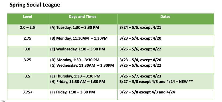 How do I know the days and times for the Social League?